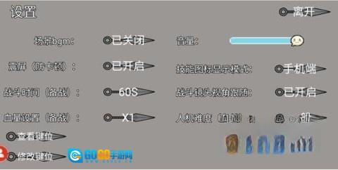 2. 玩家点击右上角的设置按钮,就能对音量以及键位设置进行调整。