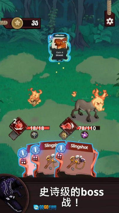 2. 对卡牌进行升级,获取神器所具备的能力,于篝火处恢复体力,进而与民俗传说里的强力Boss展开战斗。