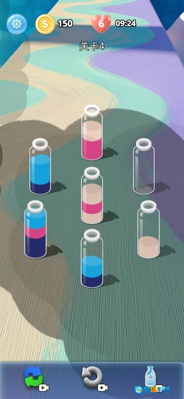 4、设置了难度呈阶梯状的不同关卡,从较为简单的三瓶挑战,到复杂的多色混合排序,解谜难度循序渐进地提升。
