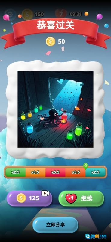 4、若遭遇困难,可借助提示功能获取帮助。需注意,每日存在体力限制。在健康进行游戏的过程中,尽情感受小章鱼墨墨与小女孩之间那温馨的友谊故事。