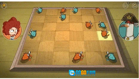 ●每位玩家每次能够操控一只螃蟹,螃蟹可进行横向或纵向的移动,其移动格数没有限制,一旦碰到其他螃蟹或者边界,便会停止移动。