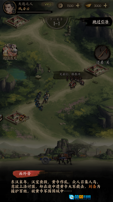1. 进入游戏后,会有一段东汉末年的剧情,玩家可选择跳过。