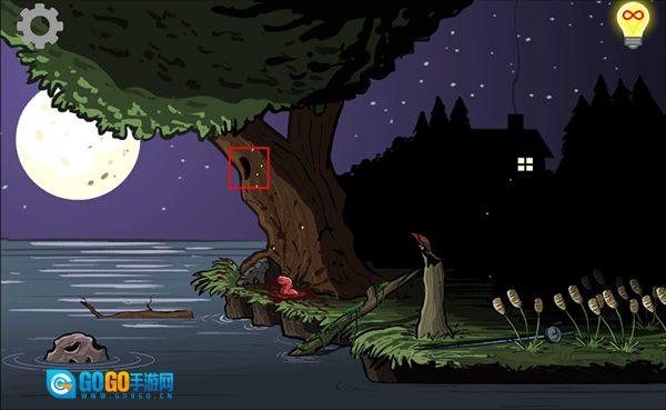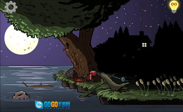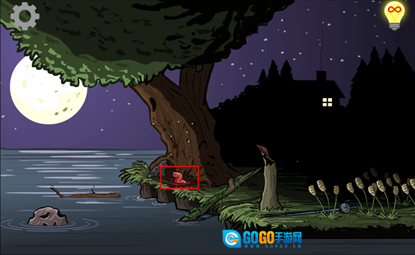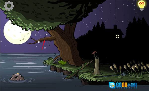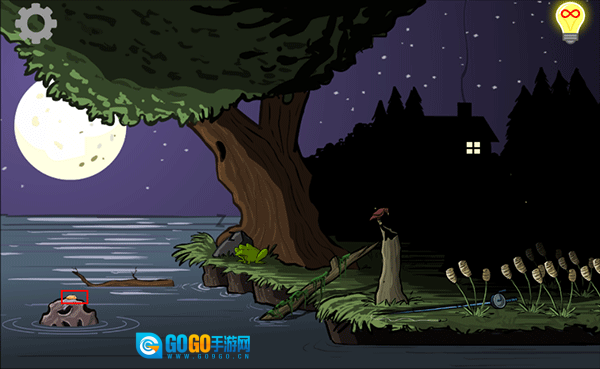2. 待树枝落到河里后,再点击一下,使虫子移动至树枝上。
