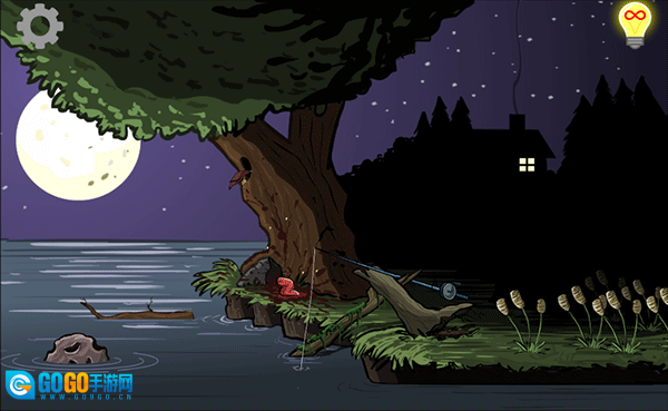 6、最后点击一下陨石,吸引鱼咬钩,完成此步骤后,点击虫子,接着多次点击鱼竿。