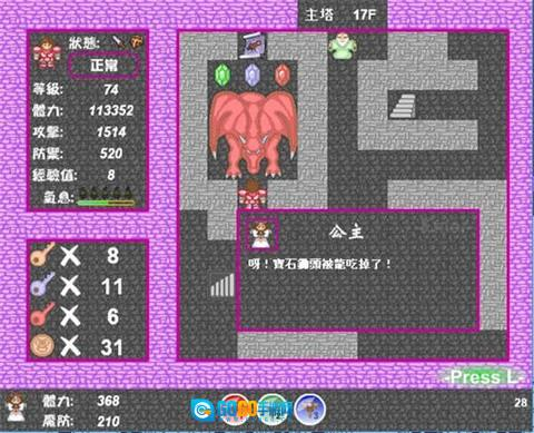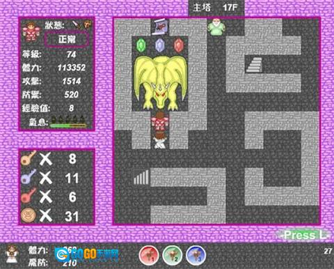 2. 拿到宝石锄头后,前往主塔17层,要牢记,在这之前千万不能击败红龙。