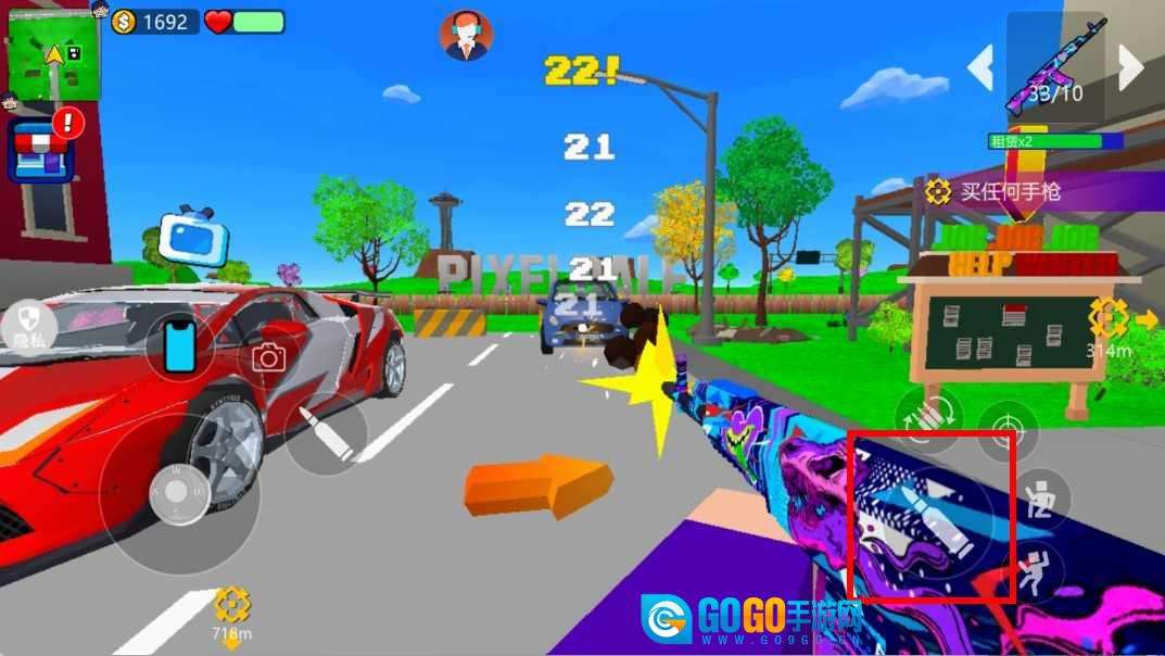 3、当发现目标时,点击右侧与攻击相关的按钮,就能操控角色通过枪械发射子弹来攻击目标,进而推动游戏进程。