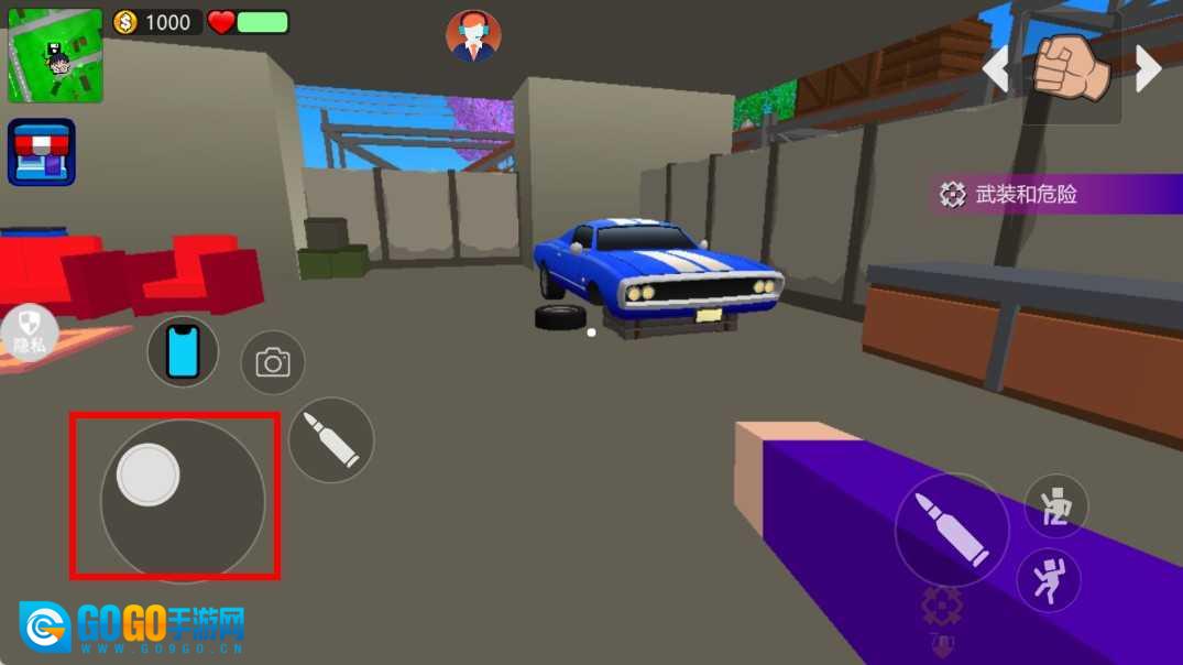 2、进入游戏之后,借助左侧的虚拟摇杆,能够操控角色在存在车辆与建筑的区域内进行移动,对场景展开探索并找寻目标。