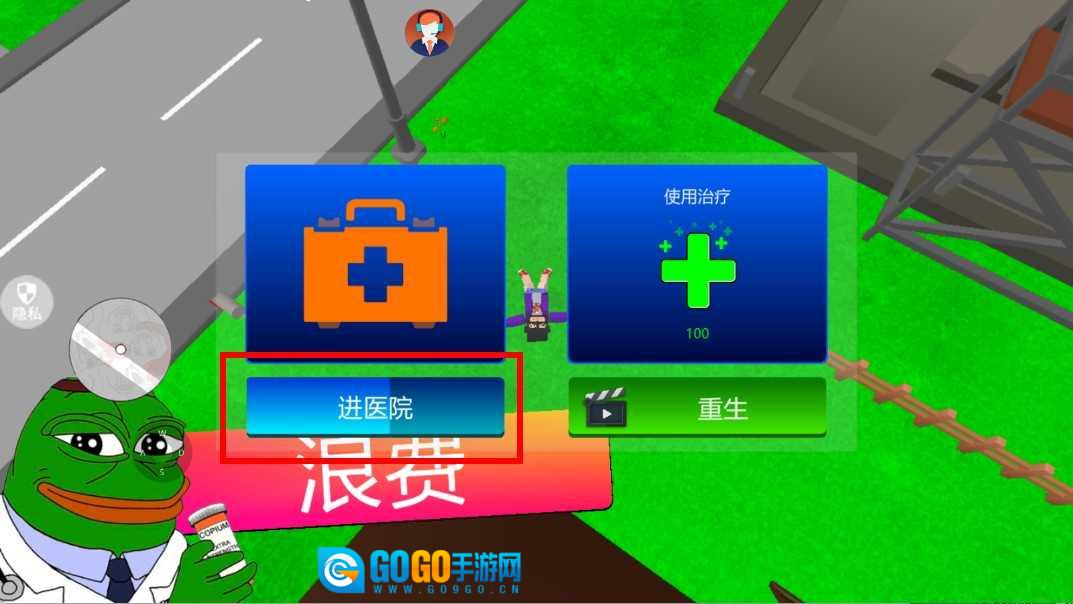4、当角色生命值下降时,你能够选择点击“进医院”按钮,进入医院来恢复生命值,从而得以继续投入游戏战斗。