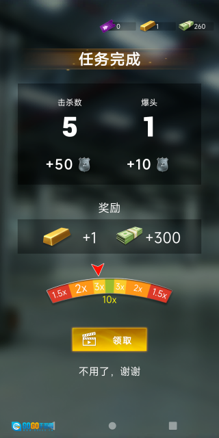 4、成功完成任务后即可领取奖励,还能解锁更多武器道具,快来参与更具挑战性的关卡任务吧!