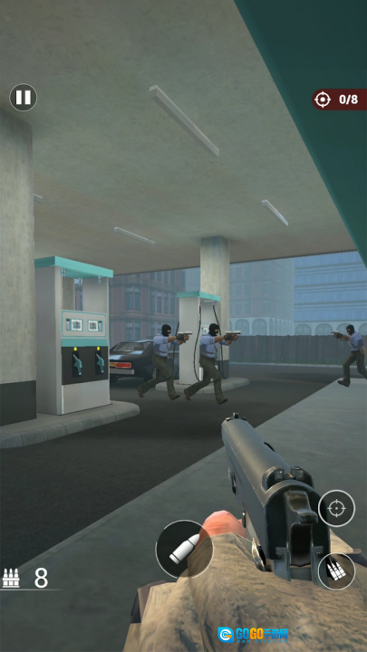 2、如以下图示,玩家在此关卡持有八颗子弹,需歼灭五名罪犯方可通关。
