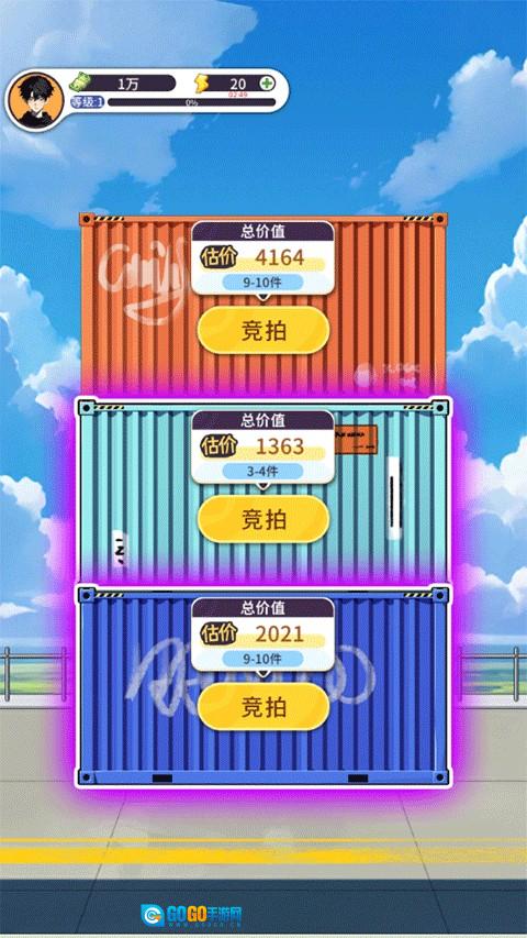 集装箱模拟器手机版,是一款充满趣味的模拟经营养成游戏。它玩法多样,能为玩家带来绝佳的经营体验。其中,竞拍经营的玩法别具一格,趣味性十足。玩家还可借助互动元素开启游戏挑战,参与游戏内活动展开挑战。在这款游戏里,玩家能体验到娱乐商业管理模拟经营的乐趣,感受到独特的集装箱模拟拍卖养成魅力,尽情享受集装箱模拟经营养成的欢乐。它适合各类玩家进入游戏挑战,属于休闲娱乐商业模拟经营类型。在集装箱中,会随机出现各种不同商品,玩法轻松有趣。感兴趣的玩家,一定不要错过这款游戏!