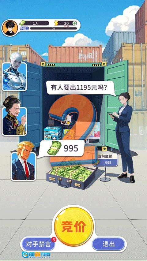 2. 初次进入时,点击竞价选项,对集装箱内的商品进行竞拍。