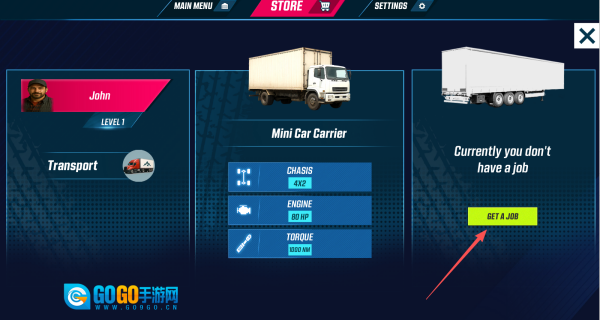 4、于商店界面,点击右侧“GET A JOB”按钮来获取运输任务,此乃开启游戏进程以及获取资源的关键步骤。