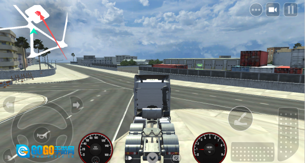 1在行驶过程中,留意左上角的地图,牢记红色箭头所标识的目的地。借助虚拟方向盘与油门,操控车辆的行驶方向与速度,顺着路线精确抵达任务地点。