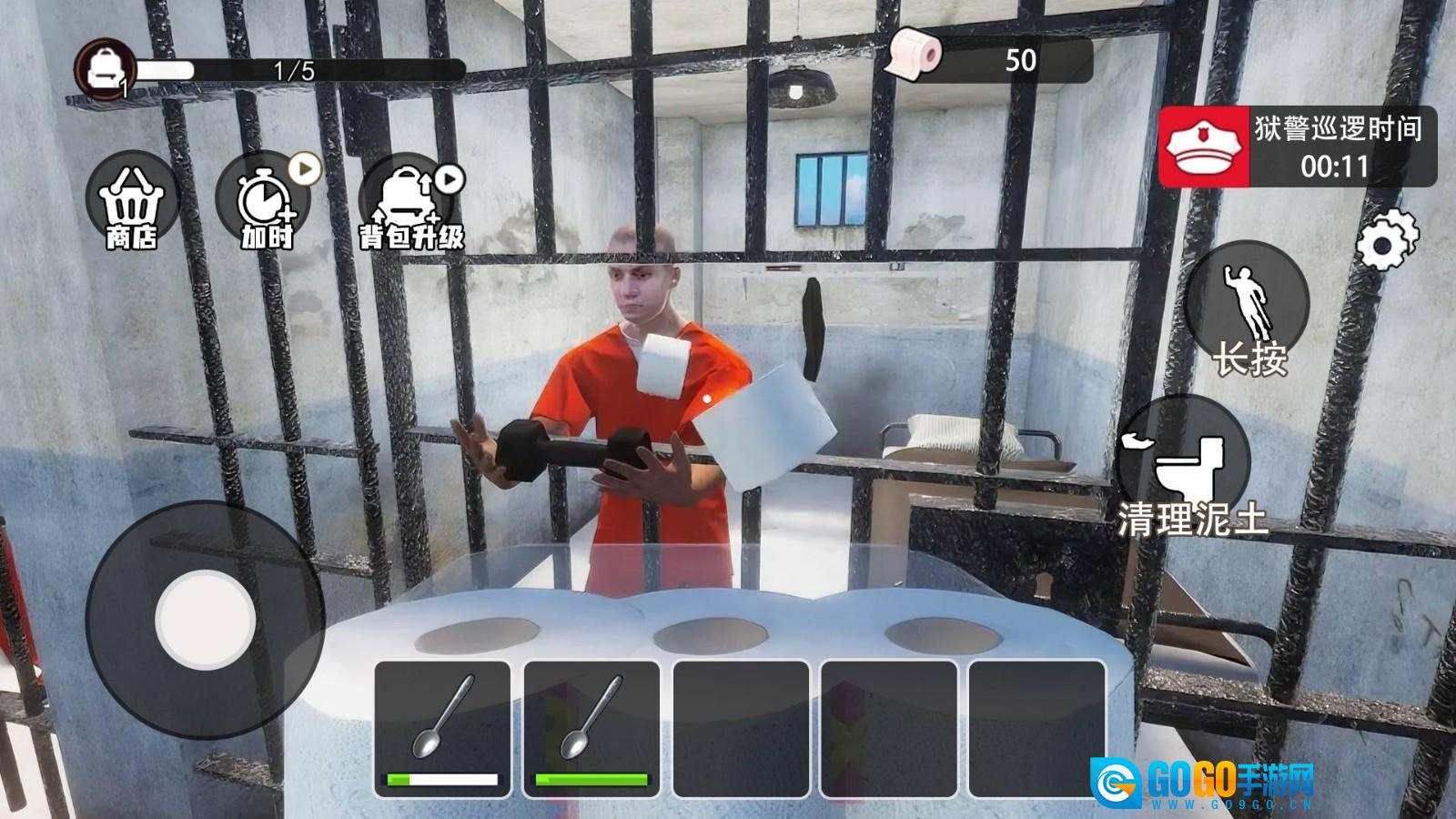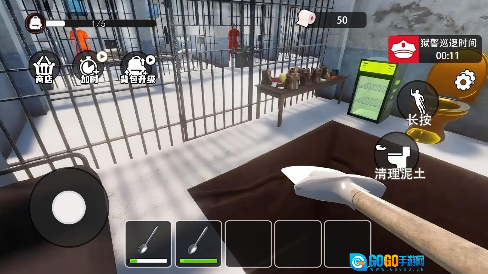2. 极简开局设定呈现:玩家初始仅手握一把生锈饭勺,整个过程需借助基础工具来实现越狱计划,资源极度匮乏的感觉自始至终如影随形。