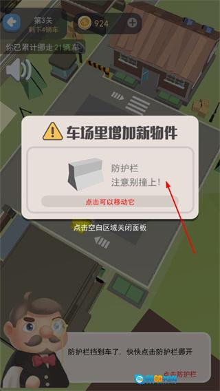 2、在关卡逐步推进的过程中,车辆数量会增多,场景复杂度也会随之提升。此时,需要合理地规划移动顺序,当遇到防护栏的时候,要及时点击进行移动操作。