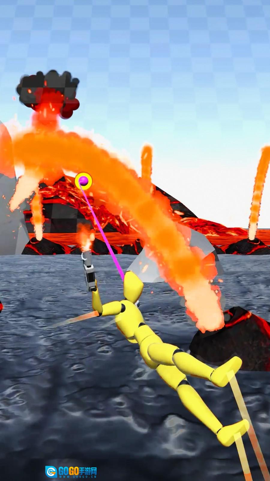 1. 玩家借助虚拟准星对准目标点,点击发射按钮放出抓钩。抓钩一旦命中,绳索便会自动收紧,迅速将玩家拉向目标位置。