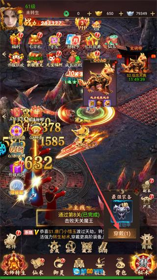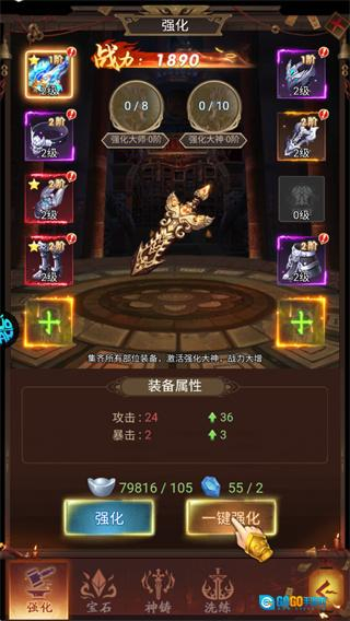 2. 持续强化身上穿戴的装备,提升战力数值。