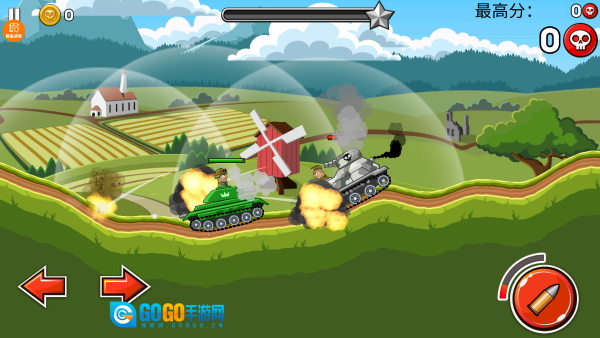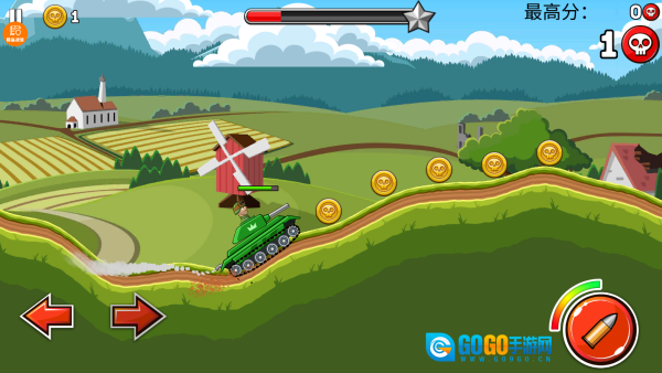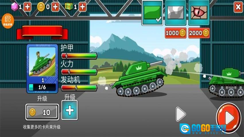 2. 在关卡里,当成功击败特定敌人或者摧毁特殊建筑时,会掉落金币。收集这些金币后,可用于在基地车库中对坦克的各项性能参数及装备进行强化。