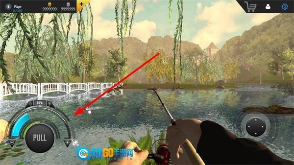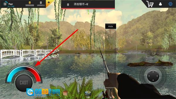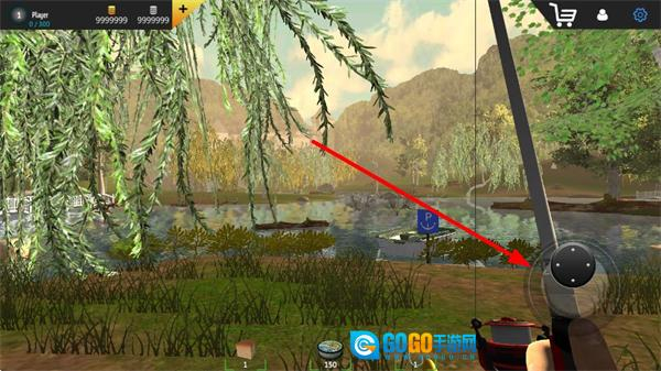 1. 通过操控右侧旋钮来调整鱼竿角度,挑选适宜的水域进行钓饵抛投。在抛投之前,务必仔细观察水域环境,寻觅鱼群聚集之处,以此提高中鱼的几率。