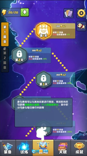 1. 进入游戏后,在试炼与赛场模式里挑选,试炼能够挑战各类不同关卡。