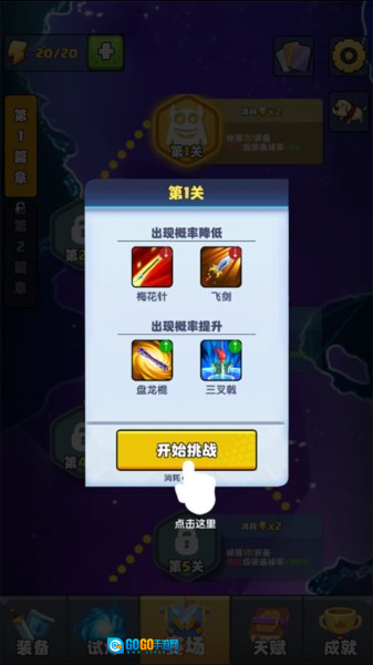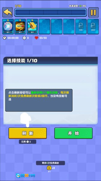 2. 挑选关卡后进行技能装配,可在随机提供的技能里选择。