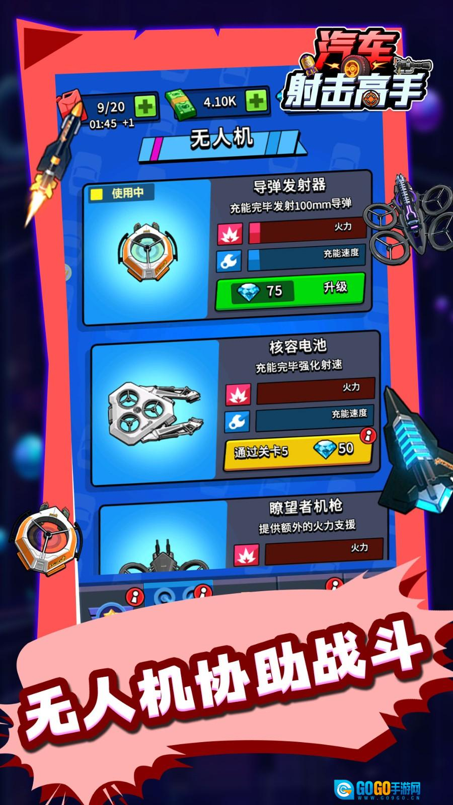 《汽车射击高手》安卓版,这是一款能让你驾驭改装战车在公路上风驰电掣的射击游戏。游戏里,你仅需操控方向盘左右转向,战车便会自动朝着沿途敌人疯狂扫射。看着敌方卡车在爆炸中化为零件碎片,那感觉格外解压。与此同时,你得及时拾取掉落的能量道具,用来升级武器。从最开始的小手枪,逐步进化为能齐发追踪导弹的移动堡垒!