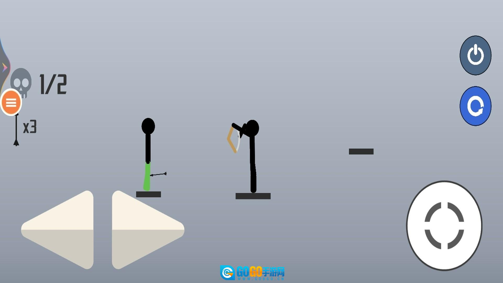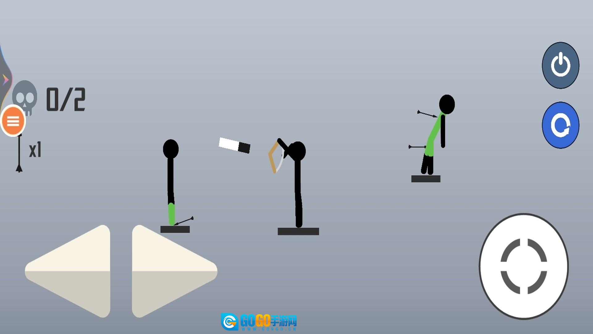 1. 双重操作步骤:第一步,操控火柴人朝着武器所在位置移动,突破地形阻碍成功获取武器;第二步,开启瞄准模式,以拖拽的方式对投掷角度和力度进行调整。