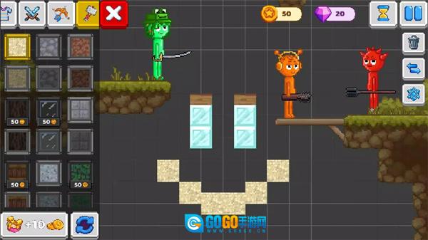 4、进入搭建模式后,你能够挑选不同方块来构建场景,通过调整角色与场景的互动布局,打造出别具一格的游戏环境。