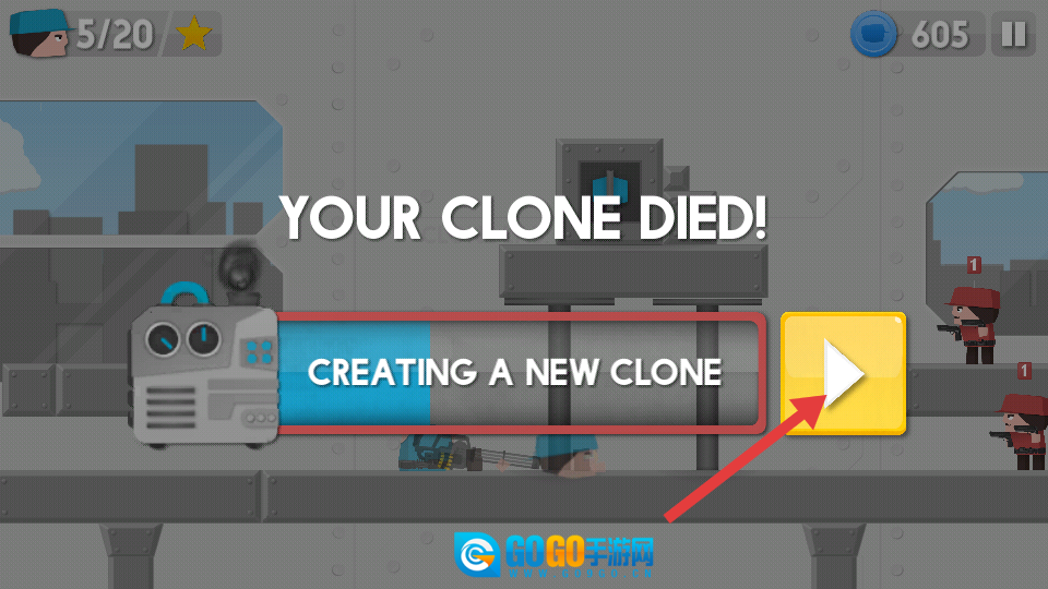 4、轻点播放按钮,生成新的克隆体,接着投入战斗,推动游戏流程的进展。
