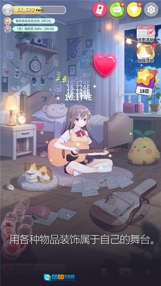 1. 想要提升粉丝好感度,不妨尝试表演各种风格的歌曲。在表演过程中,记得点击屏幕收集粉丝送上的爱心,这样就能收获丰厚奖励。弹奏吉他能慰藉疲惫的心灵,此外,你还能装饰女孩的房间,增添个人空间的魅力。借助简单的标签系统,购买道具和服装变得轻而易举,你可以打造出像校服、制服等理想中的穿搭风格。