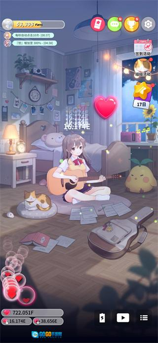 2、想更快推进游戏进度?得知道,粉丝提供的资源有限,手动点击收集爱心效果更佳。集中精力提升每位粉丝的好感度,逐步解锁更多奖励,如此一来,你的进展就能加快。