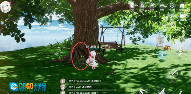 沿着路径继续向上行进,映入眼帘的是大树、画板以及秋千。在这些设施的周边区域,共计存在两处虫类刷新点和一处木材类刷新点。