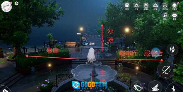 第一步,朝着主楼的方向行进,这时你会瞧见一条与悬崖相连的小道。在主城与饰品店之间,存在着一处石块所在的位置。