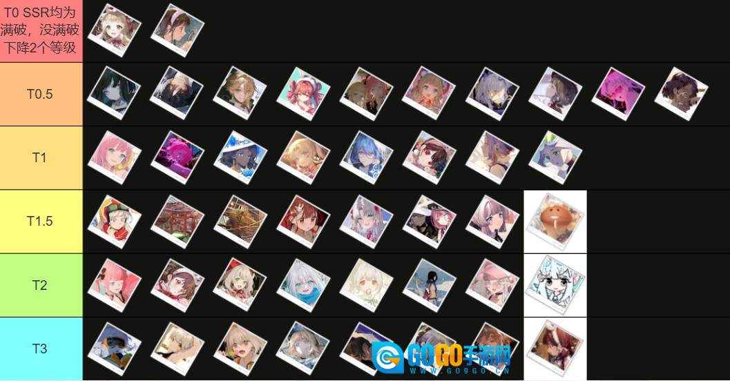 尽管上述节奏榜的评价分为5个等级,然而每一级之间的强度落差着实太大,T1级别以下的角色,不建议优先进行培养。