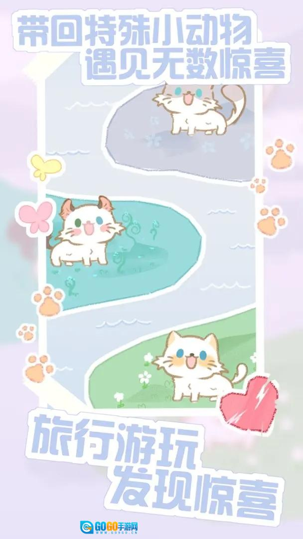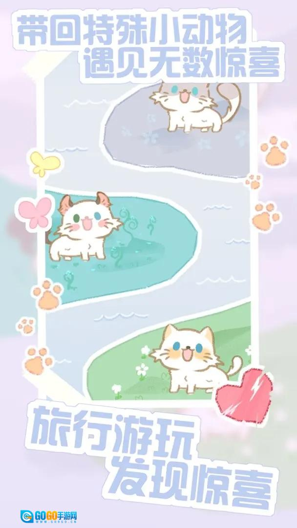 2. 游戏世界里栖息着数十种模样各不相同的可爱猫咪,每一只猫咪都有着独一无二的性格偏好与成长历程,静候玩家用心探寻。