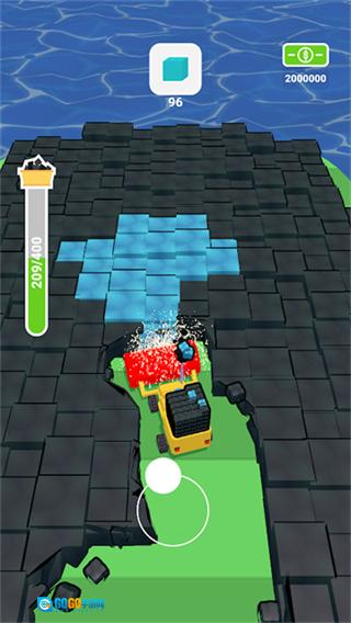 1、通过操控碎石机来挖掘石块来进行出售获取金币。