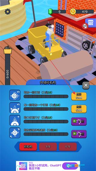 2. 操控碎石机前往升级所,耗费金钱购置碎石机设备以实现升级。