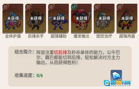 阵容构成:鲨鱼王、公牛巴尔、猫女菲莉、藕巴、木乃伊、猩猩金刚