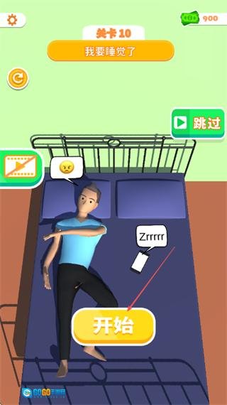1、点击开始按钮,进入关卡10我要睡觉了的挑战。