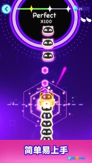 1. 依照歌曲的旋律和节拍,在相应节点轻点屏幕,指挥猫咪进行跳跃动作。