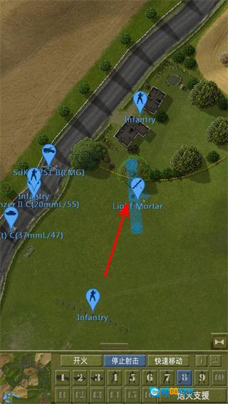 2、当遭遇Light Mortar单位,点击此单位并将其部署到战略点位。该迫击炮能够提供远程火力支援,在部署过程中,优先挑选可覆盖敌方行进路径的区域。