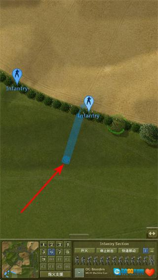 3、当操控步兵单位时,点击标有红色箭头的移动路径,使步兵依照指定路线向前推进。在移动过程中,要充分结合地形,借助掩体来提高自身的生存能力。