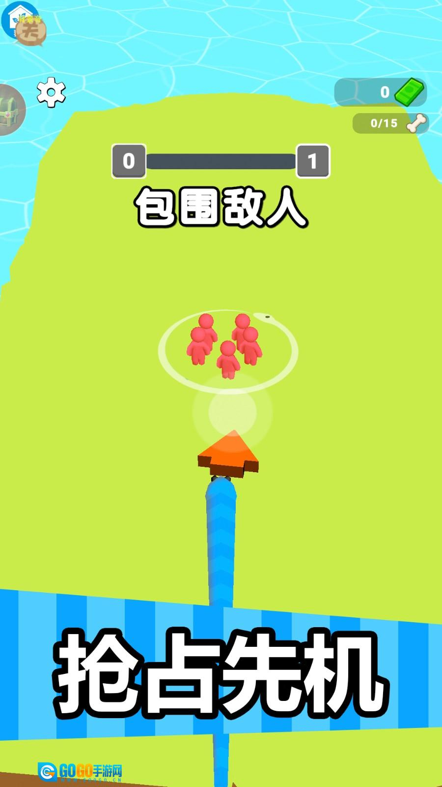 1. 控制蛇在地图里穿梭,凭借身体围成封闭空间,把火柴人困在其中。完成包围动作后,就能将火柴人吞噬,随即自动转化为骨骼资源。