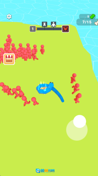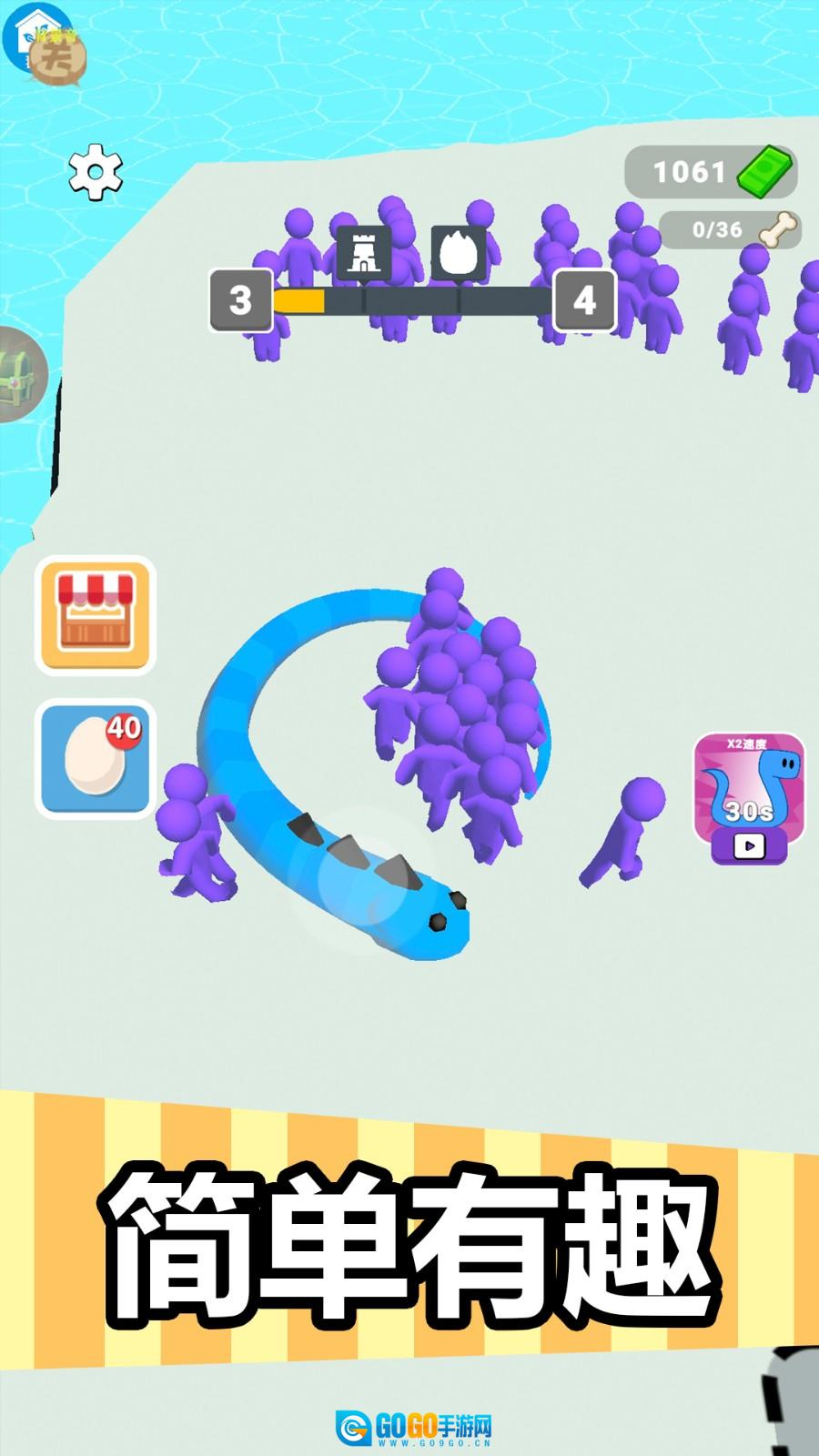 1. 这款游戏属于休闲策略类型,主角为蛇形生物。玩家在游戏里操控一条能够进化的蛇,依靠围捕场景中的火柴人来获取资源。