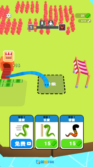 4. 紧接着,玩家能够花费金币来增强蛇蛇的属性,如此一来,便能更为高效地捕捉火柴人,进而应对关卡中的最终 BOSS!