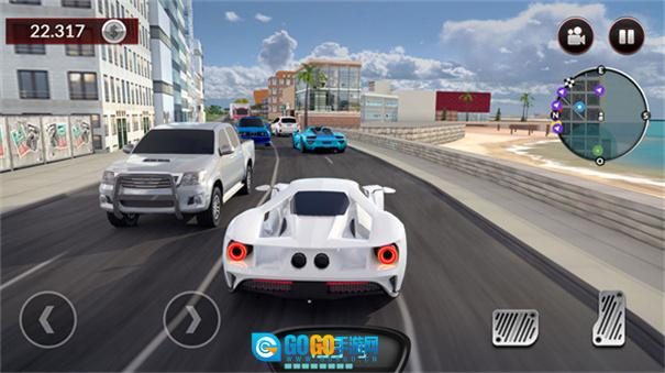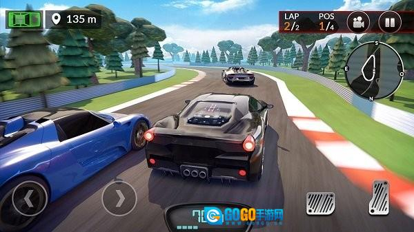 2、车辆移动方向的控制以及漂移操作,可借助左侧虚拟方向盘来完成;而加速与刹车功能,则分别由右侧按键进行管理。