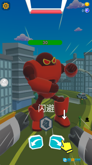 2. 游戏的主要玩法为回合制的攻防战。在敌人的攻击阶段,玩家需判断攻击方向,然后点击相应的闪避按钮以躲避攻击。