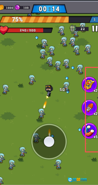 1. 玩家需持续点击屏幕任意地方,以此操控游戏角色在场景里自由走动,同时主动攻击所有向你扑来的小僵尸。