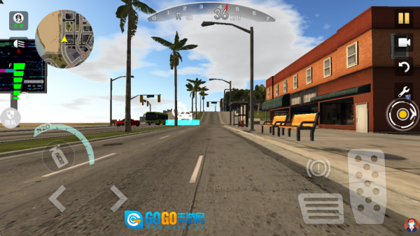 3. 开启地图值周后,利用左侧按钮操控方向,右侧按钮则用于控制油门和刹车。同时,留意画面左上角的小地图,依照其指示朝着目标进发。